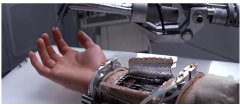 影視作品《星球大戰(zhàn)—帝國反擊戰(zhàn)》中,盧克·天行者斷臂后曾安裝過一款高科技假肢,圖片呈現(xiàn)的是機器對手臂進行意識感知測試,而現(xiàn)在它終于成真了