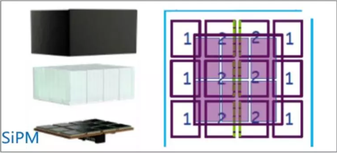 SiPM較傳統(tǒng)的PMT而言,采用了半導(dǎo)體集成電路芯片技術(shù)。這種半數(shù)字化芯片產(chǎn)品,體積明顯減小,可以做到高度的集成化,同時可以實現(xiàn)PET中關(guān)鍵的TOF技術(shù)。但是,模擬信號到數(shù)字信號的A/D轉(zhuǎn)換依然需要后續(xù)ASIC電路來解決,SiPM只是和原來的PMT一樣,單純的進(jìn)行信號的接受放大,其采集到的電信號通過后續(xù)的電路去估算大致的光子計數(shù),并轉(zhuǎn)化成數(shù)字信號,一個輸出=所有脈沖的疊加,處理過程依然受到模擬電路的影響(3,7)。