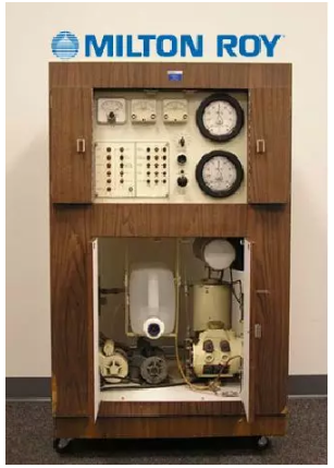 世界上第一臺透析液配比系統(tǒng)是在1963年,由伊利諾伊大學化學博士阿爾伯特·拜波(Albert Babb)發(fā)明,他采用了世界上第一臺計量泵的發(fā)明者,同時也是全世界最大的計量泵制造商Milton Roy的泵來為透析液配比。他將原型機命名為Mini-1,其最大的特點是可作為便攜式設(shè)備由單人使用。