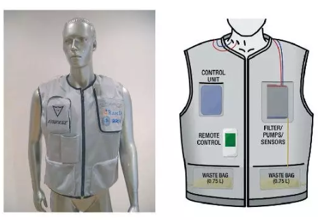 時間來到1975年,日本人江良首先攻克了這一課題,他利用TM-101數(shù)字溫度計和REDY透析液吸附再循環(huán)裝置,制成40х35х15cm,9.2公斤重的攜帶型人工腎。1978年時,這一設(shè)計已經(jīng)發(fā)展成一種成熟的茄克式人工腎系統(tǒng),總重量4.5公斤的夾克衫上集成了透析液、血泵、吸附劑和透析器,并可以連續(xù)工作。