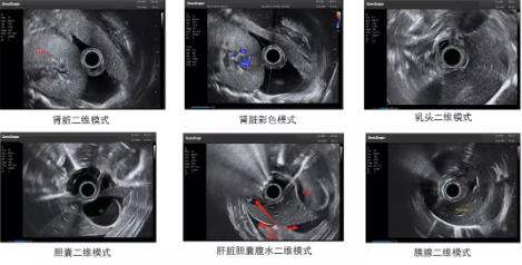 (圖5)EG-UR5置于巴馬香豬上消化道不同位置處探測所得到的超聲圖像
