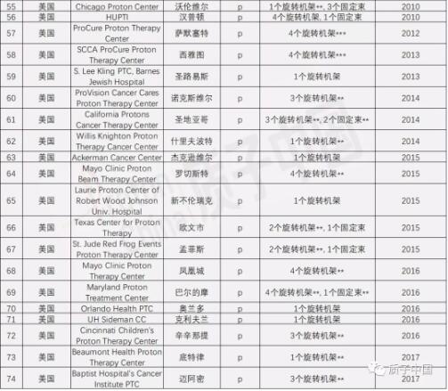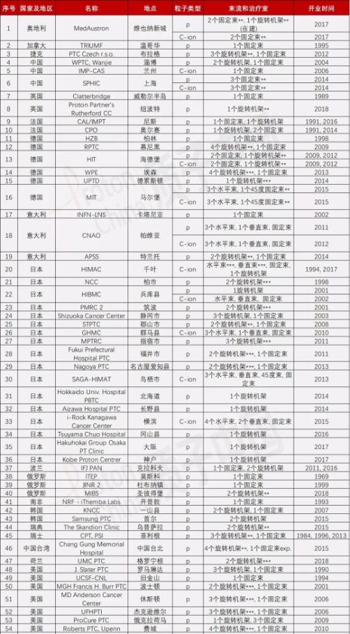 附:全球已運營質(zhì)子重離子治療中心匯總表(截至2018年7月)