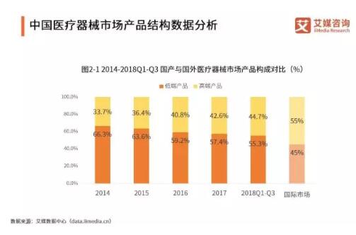 艾媒咨詢分析師認(rèn)為,相比于全球醫(yī)療器械市場,近三年中國醫(yī)療器械市場的結(jié)構(gòu)已趨向優(yōu)化但結(jié)構(gòu)依然嚴(yán)重不平衡,高端醫(yī)療市場將成為下一個發(fā)力點(diǎn)。