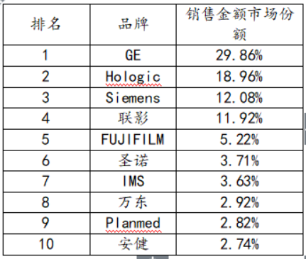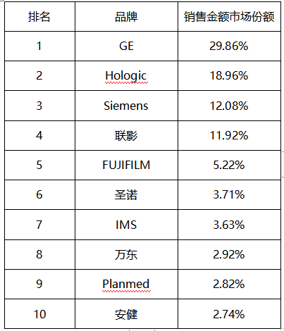 銷售金額:GE和Hologic 依然穩(wěn)如泰山
