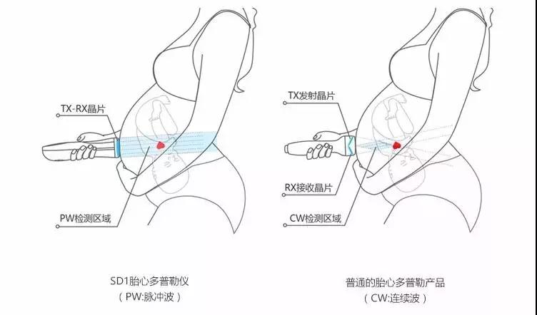 目前,市面上大部分胎心多普勒產(chǎn)品采用連續(xù)波工作模式,它的缺點(diǎn)是檢測(cè)面積小,尋找胎心耗時(shí)。為了便于普通用戶快速地找到胎心的位置,SD1胎心多普勒儀創(chuàng)新性地采用了單晶片脈沖波前沿技術(shù),降低找胎心角度要求,提升胎心檢測(cè)面積,幫助用戶快速尋找胎心。準(zhǔn)媽媽們?cè)僖膊挥脫?dān)心因?yàn)椤凹夹g(shù)”不行,找不到胎心啦!