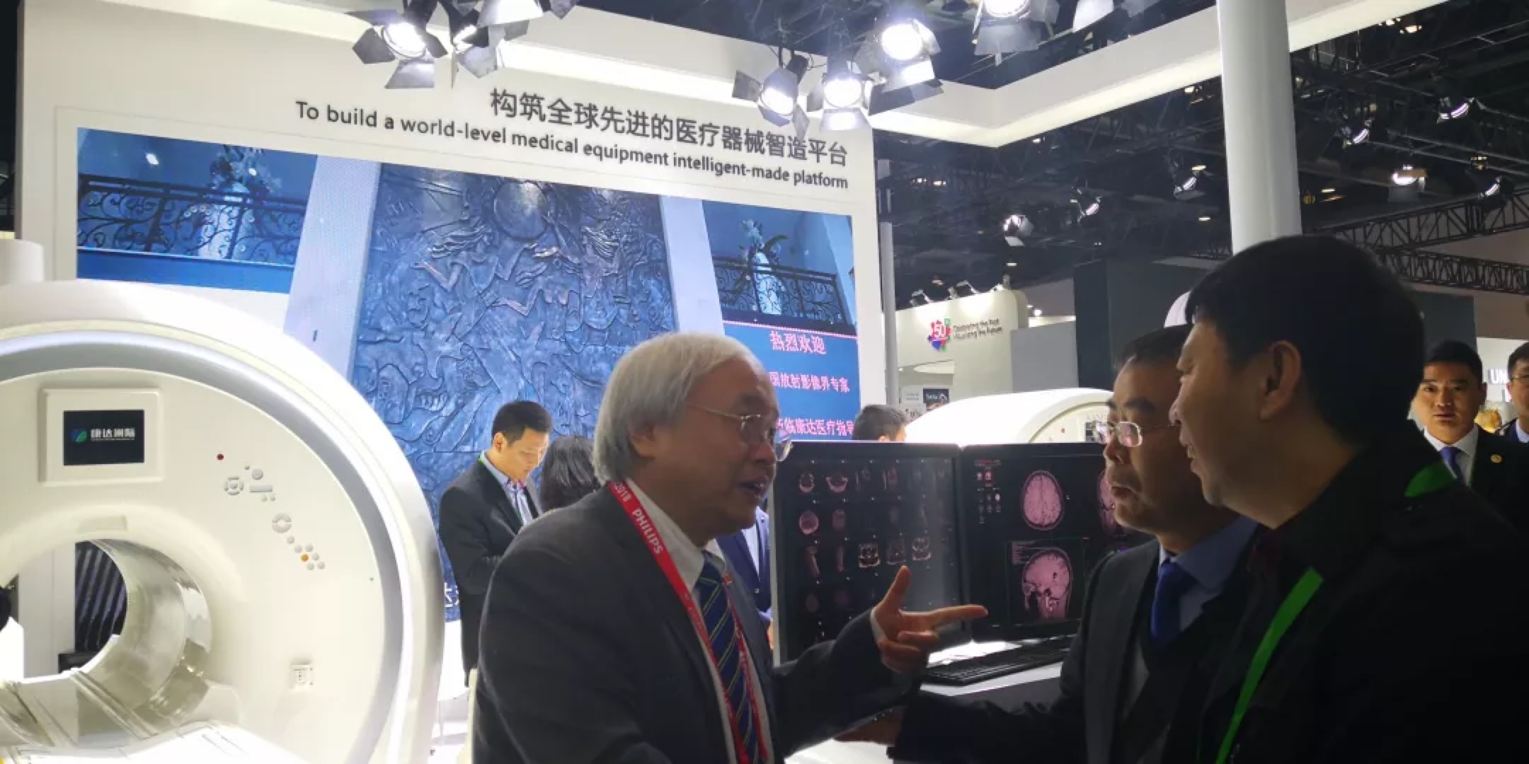 中國(guó)放射學(xué)家、中華醫(yī)學(xué)會(huì)放射學(xué)分會(huì)主任委員、北京協(xié)和醫(yī)院放射科主任金征宇一行也特意來到了康達(dá)洲際展臺(tái)。金征宇教授在聽取了康達(dá)的工作人員對(duì)康達(dá)洲際1.5T磁共振等一系列產(chǎn)品的介紹后,對(duì)康達(dá)洲際在產(chǎn)品的研發(fā)和創(chuàng)新上給予了高度肯定。