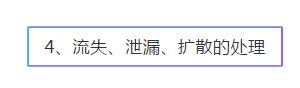 (4)采取適當?shù)陌踩幹么胧?,對泄漏物及受污染的區(qū)域、物品進行消毒或者其他無害化處置,必要時封鎖污染區(qū)域,以防擴大污染;