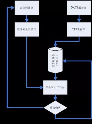 為了驗證治療過程中病人擺位位置是否正確,以往生產(chǎn)的加速器曾經(jīng)直接利用加速管產(chǎn)生的高能X射線進行拍攝“射野照片”的功能,但一方面由于膠片沖洗需要一段時間,所以該功能只能起驗證記錄的作用,不能起即時糾正擺位的作用,另外一個方面是利用高能X射線成像圖像灰度比不高,影像不清晰。