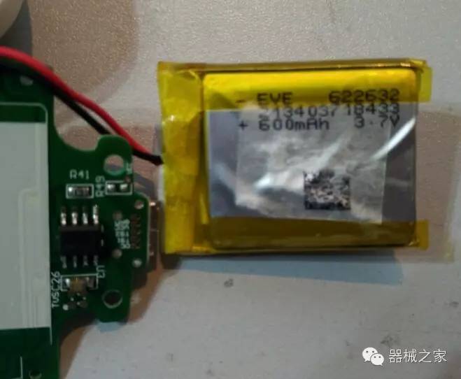 故可知:產(chǎn)品藍(lán)牙廣播間隔(Interval)160ms,手機(jī)連接需用時(shí)320~540ms,可以看出,脈搏波設(shè)置的廣播間隔很短,可以設(shè)置這么短間隔,可能是因?yàn)閺S商使用了一塊容量相對(duì)較大的電池吧。電池使用的是聚合物鋰電池622632型號(hào),容量600mAh。
